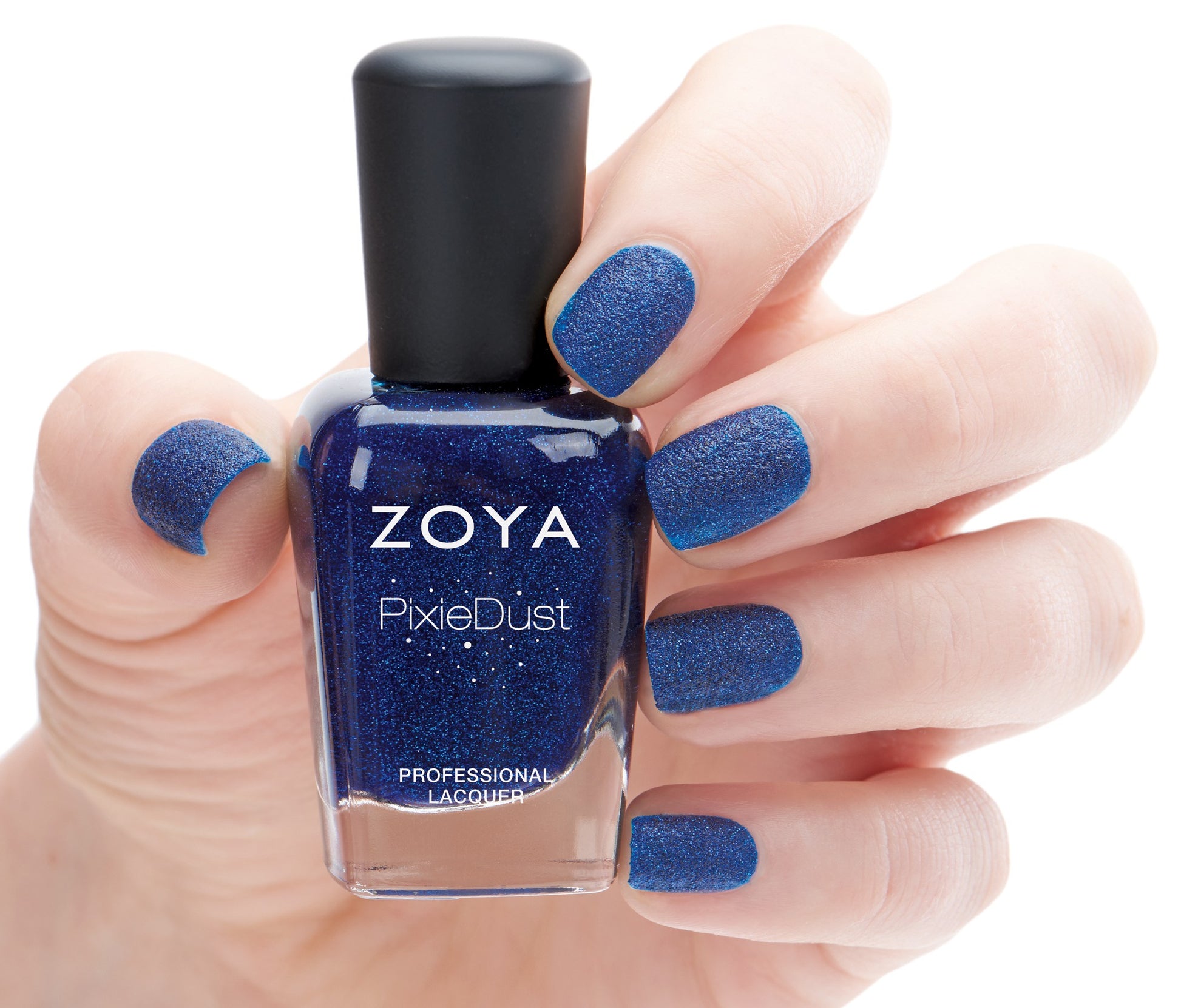 Un blu zaffiro brillantemente intenso con scintille blu nell'esclusiva formula Zoya PixieDust Matte Sparkle.
